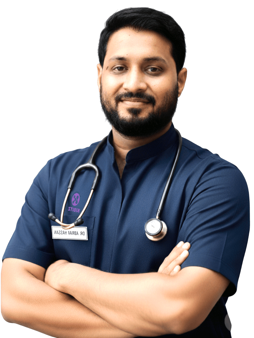 Malabar’s First Sports Medicine Specialist, Dr. Abrar Hassan, is an expert in sports medicine with an MBBS, MD (Sports Medicine), and advanced certifications including World Rugby Passport Levels 1, 2 & 3, and Diploma in Football Medicine (FIFA). He brings world-class knowledge and experience to athlete care, injury prevention, and performance optimization.